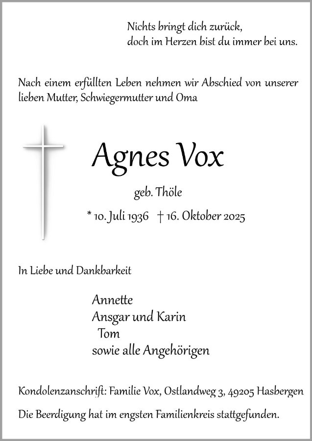 gestorben am 16. Oktober 2025 in Hasbergen