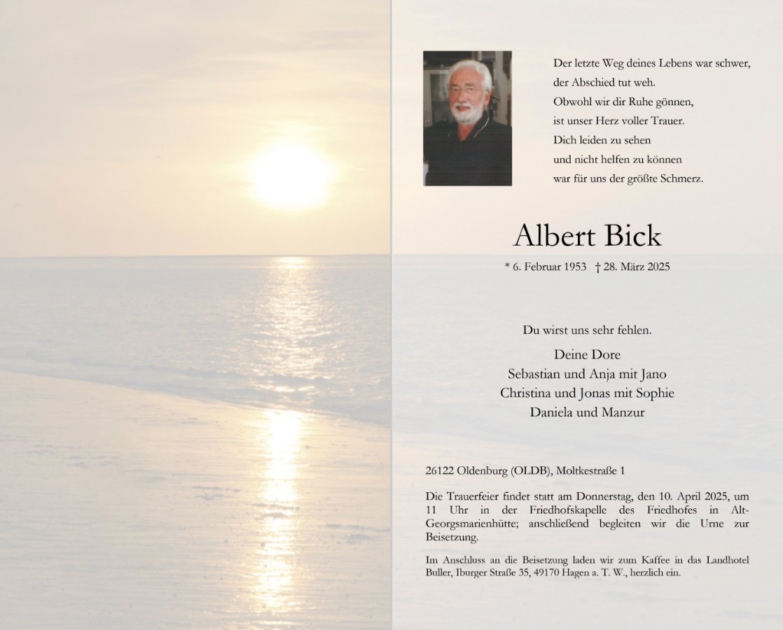 Albert Bickgestorben am 28. März 2025
