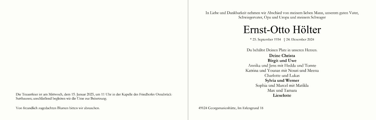wir wünschen Ihnen für die kommende Zeit viel Kraft und dass es Ihnen gelingt, dankbar auf die positiven Erinnerungen zurückzublicken. Diese Gedenkseite möge Ihnen dabei helfen, Ihre Trauer zu teilen und das Andenken gemeinsam wachzuhalten.