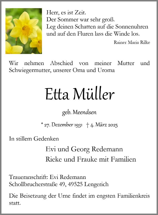 wir wünschen Ihnen von Herzen viel Kraft, dass Sie Menschen um sich haben, die Ihnen in dieser schweren Zeit beistehen und Halt geben. Zusätzlich können Sie auf dieser Gedenkseite Erinnerungen teilen und so das Andenken gemeinsam wachhalten.