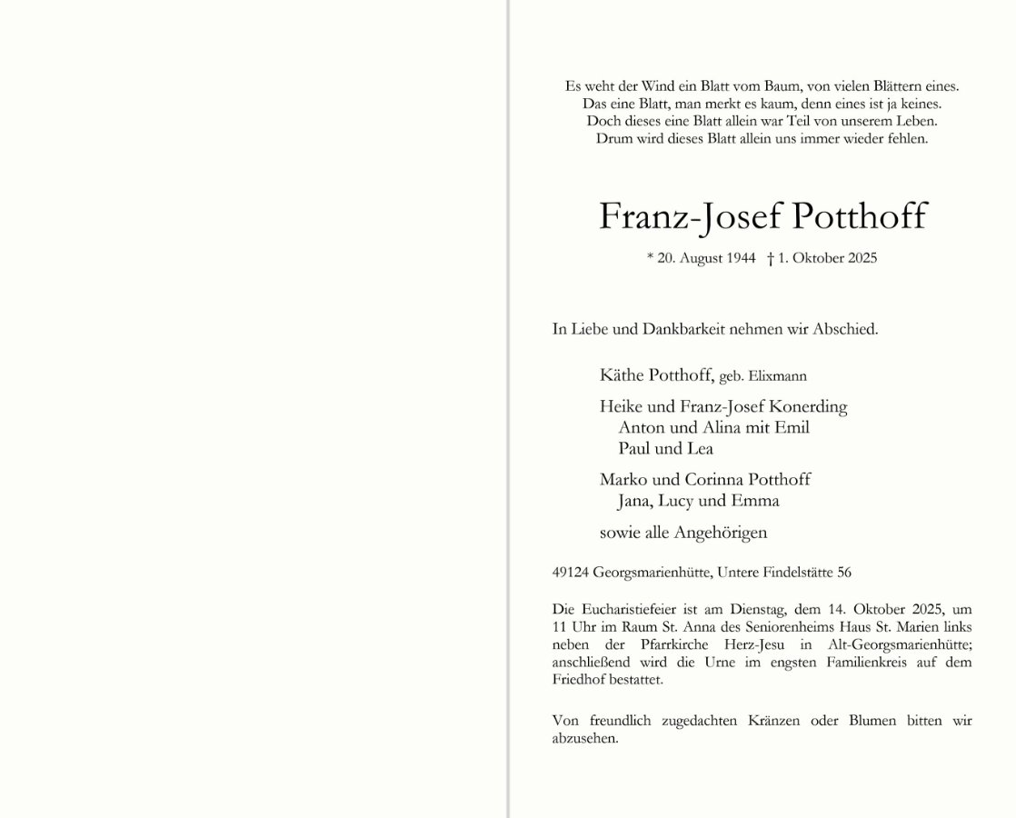 gestorben am 1. Oktober 2025 in Georgsmarienhütte