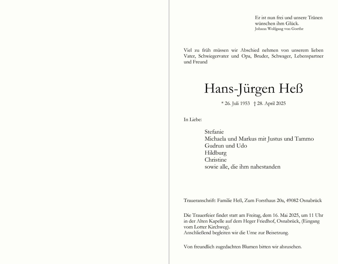 Sprechen Sie im Kondolenzbuch den Hinterbliebenen Ihr Beileid aus und teilen Sie persönliche Gedanken und Erinnerungen mit anderen.