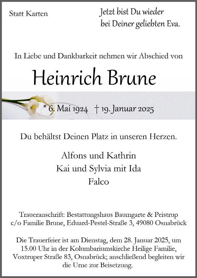 wir wünschen Ihnen für die kommende Zeit viel Kraft und dass es Ihnen gelingt, dankbar auf die positiven Erinnerungen zurückzublicken. Diese Gedenkseite möge Ihnen dabei helfen, Ihre Trauer zu teilen und das Andenken gemeinsam wachzuhalten.