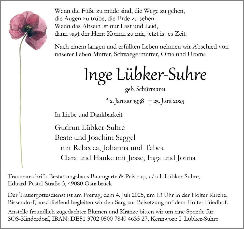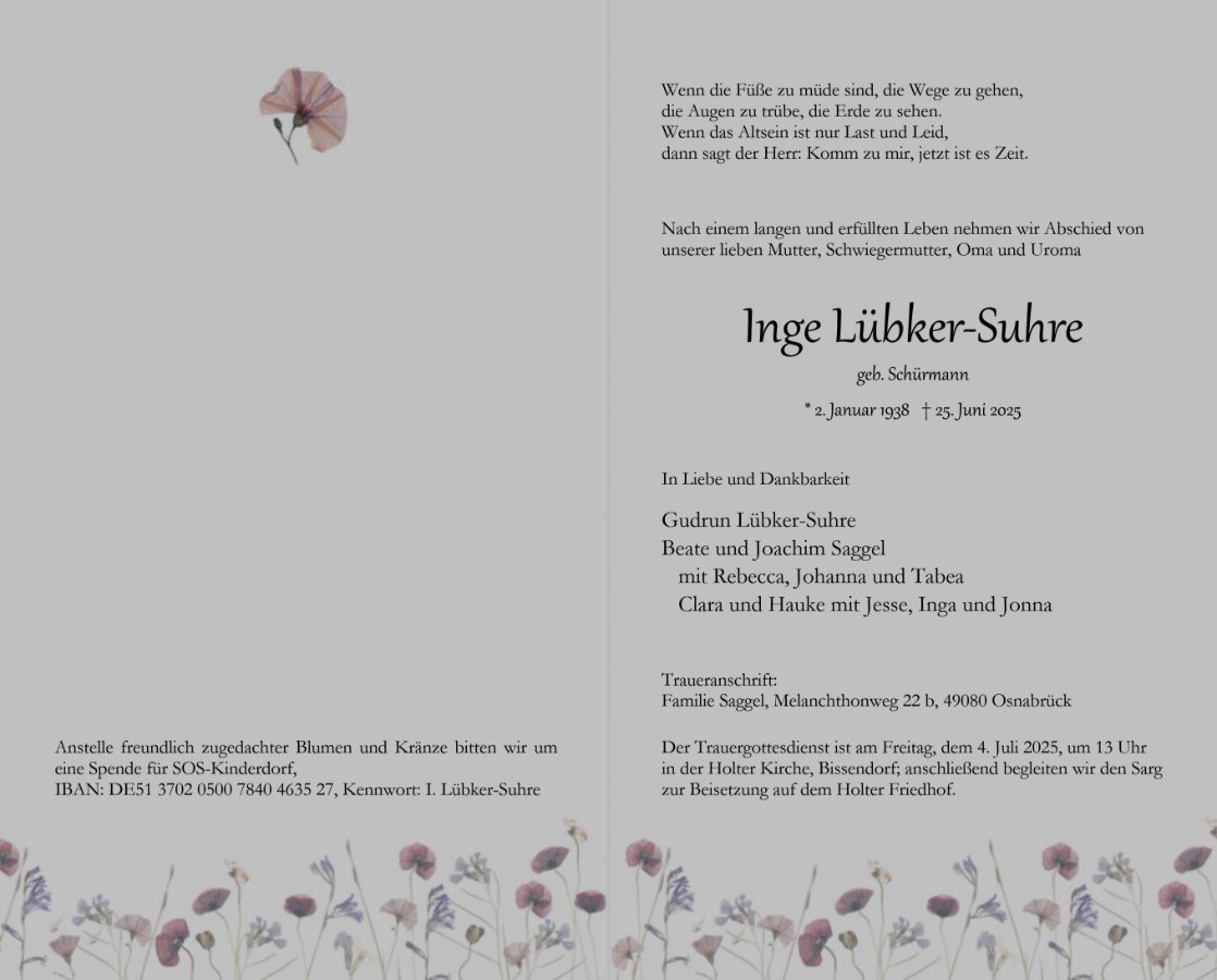 wir wünschen Ihnen von Herzen viel Kraft, dass Sie Menschen um sich haben, die Ihnen in dieser schweren Zeit beistehen und Halt geben. Zusätzlich können Sie auf dieser Gedenkseite Erinnerungen teilen und so das Andenken gemeinsam wachhalten.