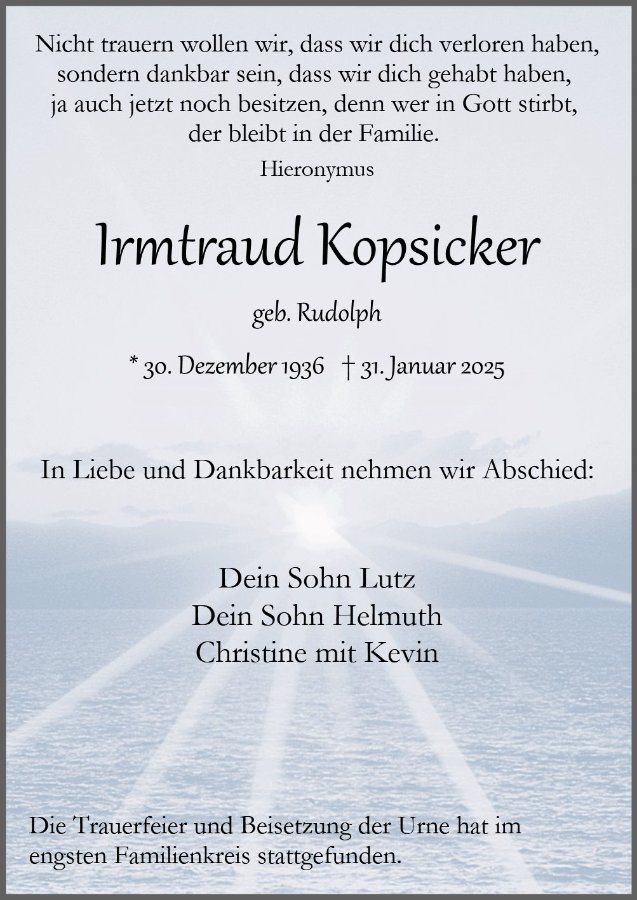 Irmtraud Kopsickergestorben am 31. Januar 2025