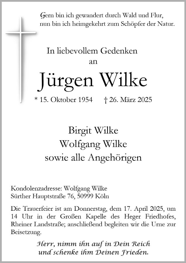 Jürgen Gerhard Paul Wilkegestorben am 26. März 2025
