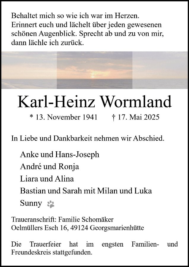 wir wünschen Ihnen für die kommende Zeit viel Kraft und dass es Ihnen gelingt, dankbar auf die positiven Erinnerungen zurückzublicken. Diese Gedenkseite möge Ihnen dabei helfen, Ihre Trauer zu teilen und das Andenken gemeinsam wachzuhalten.