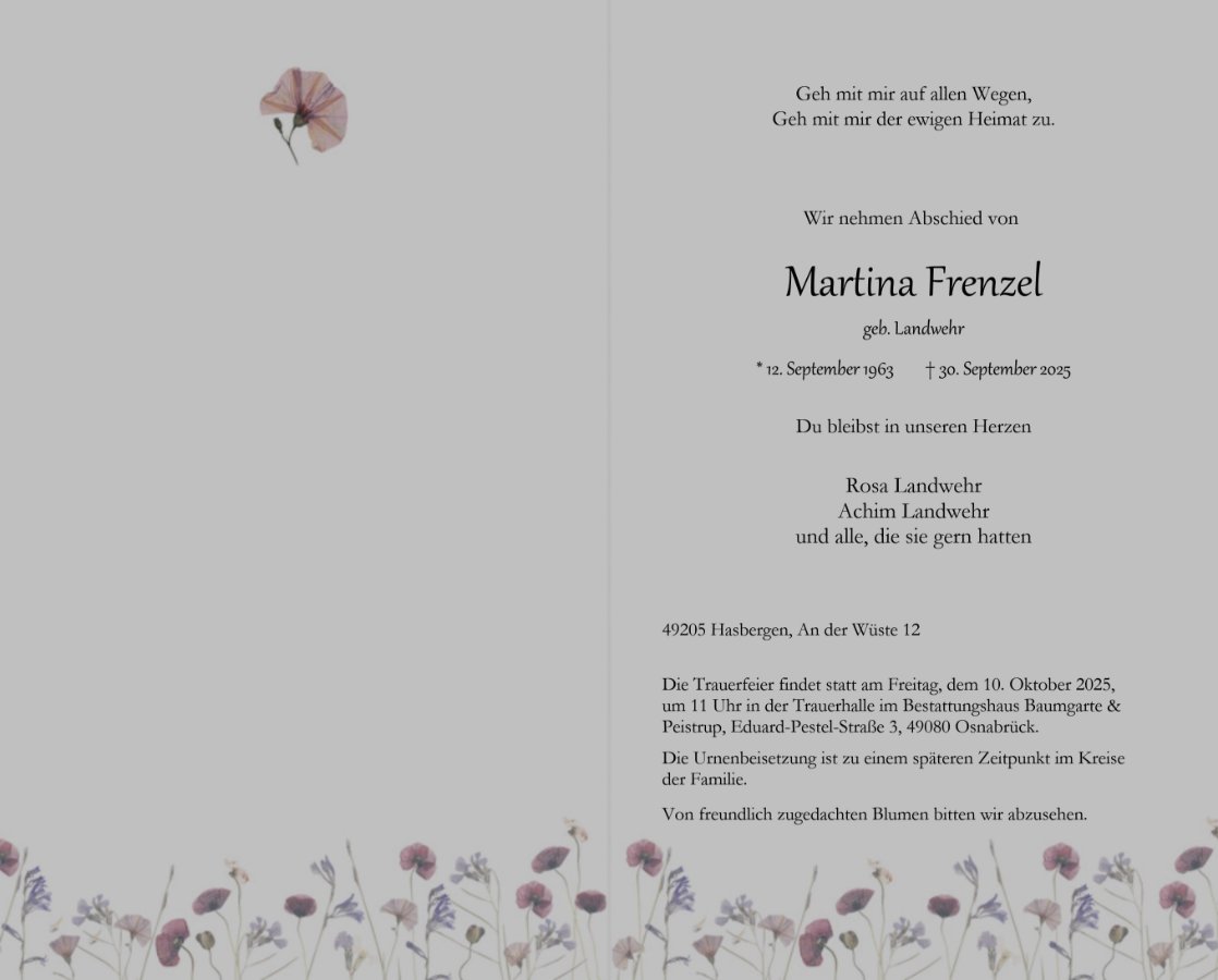Sprechen Sie im Kondolenzbuch den Hinterbliebenen Ihr Beileid aus und teilen Sie persönliche Gedanken und Erinnerungen mit anderen.
