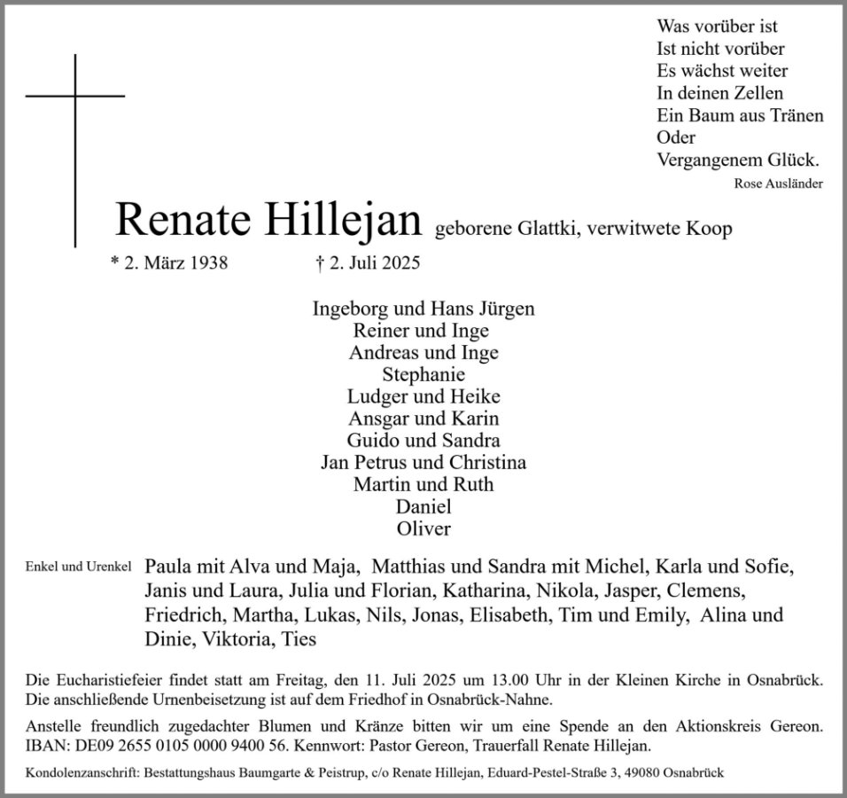 in dieser Zeit des Schmerzes wünschen wir Ihnen Kraft, den Verlust im Kreise Ihrer Liebsten zu verarbeiten. Als Zeichen unserer Anteilnahme und des Gedenkens entzünden wir dieses erste Licht. Möge diese Gedenkseite Ihnen helfen, Erinnerungen zu teilen und so das Andenken gemeinsam wachzuhalten.